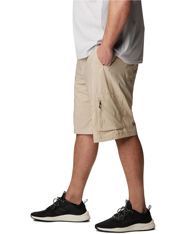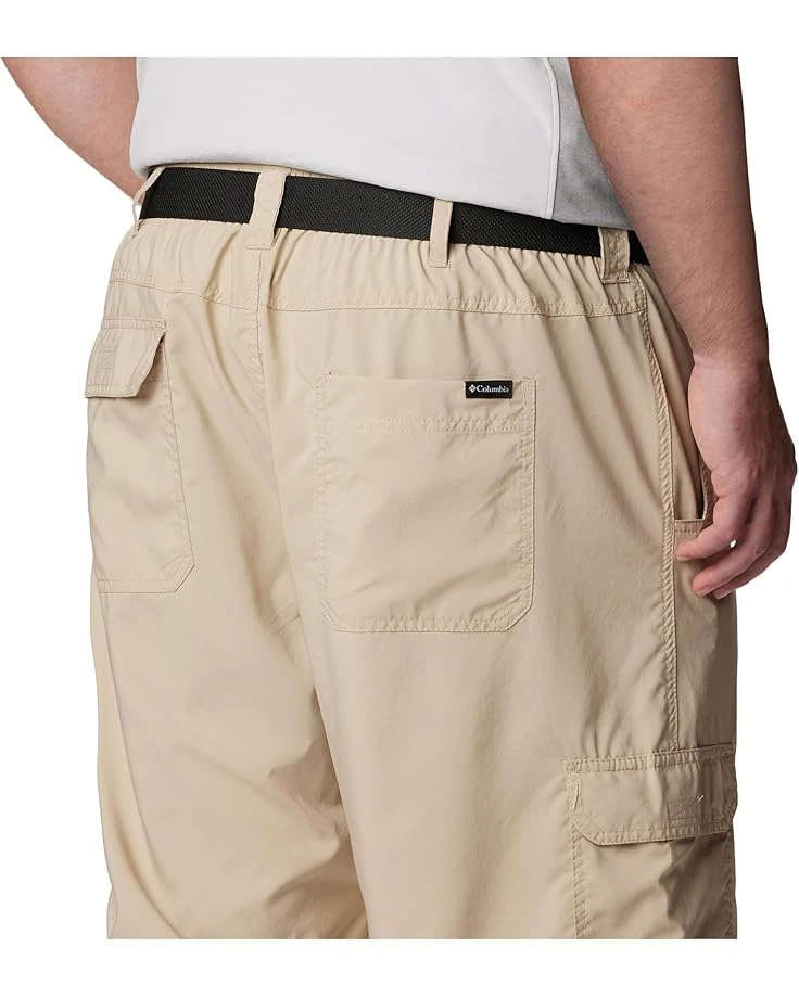 - Lounge or get ready for an intensive workout, the Columbia® Big & Tall Silver Ridge™ Utility Cargo Shorts are perfect to keep you comfortable all day long. The pull-on style shorts have an integrated removable belt, zip-fly and button closure with a partially elasticized waist, hand pockets, zip-closed security pockets, hook-and-loop closure cargo pocket, gusset detail, and back pockets.