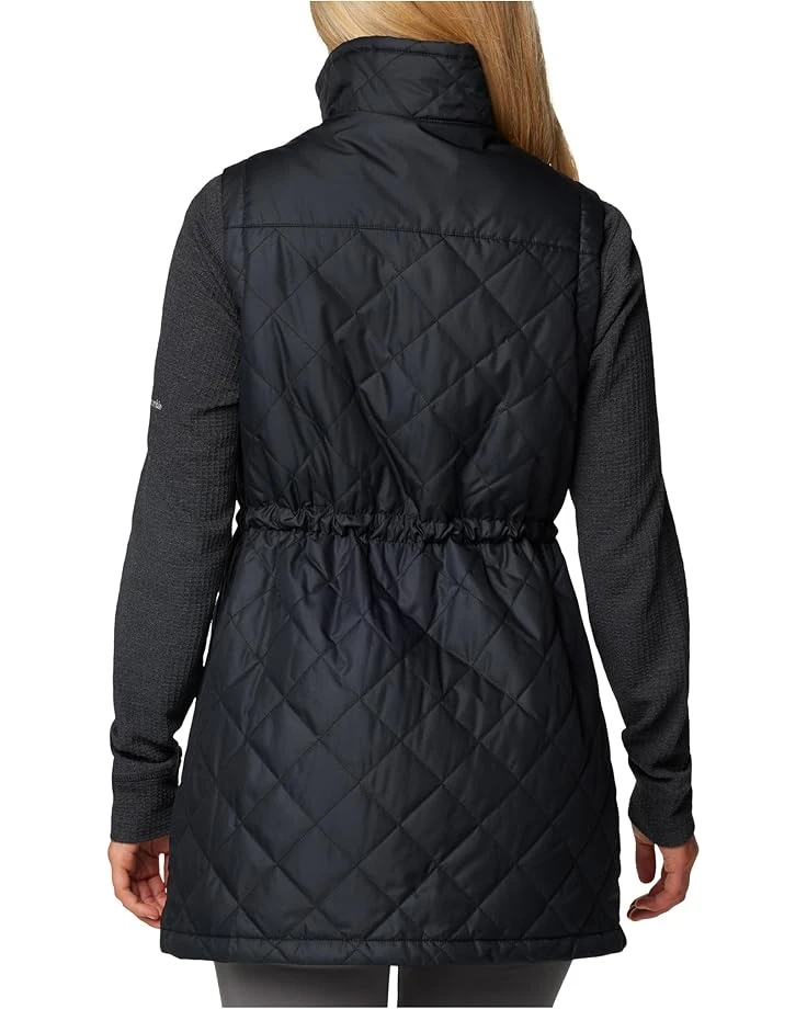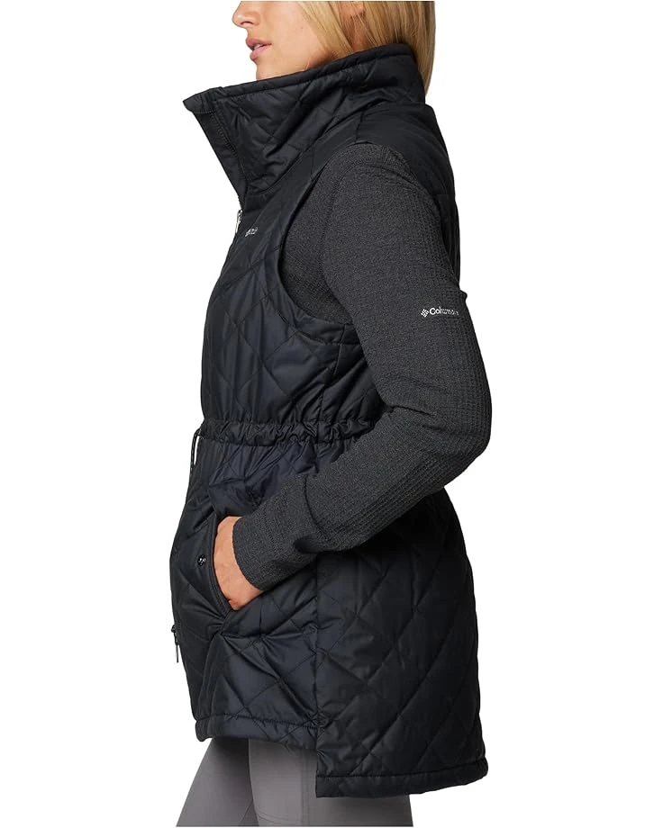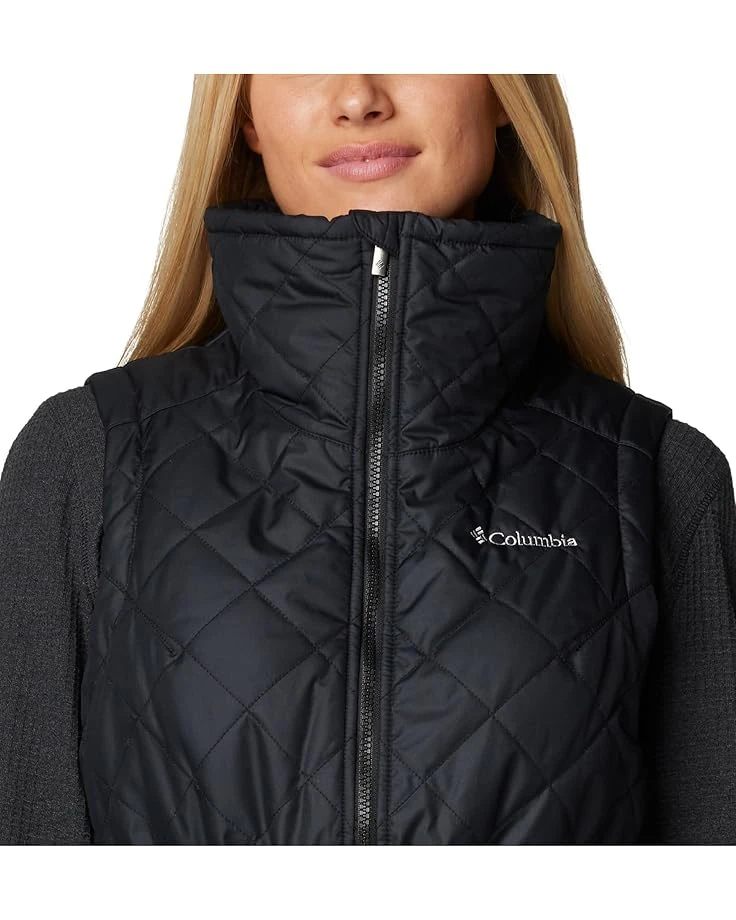 - The Columbia® Copper Crest™ II Mid Vest features Omni-Shield advanced repellency, providing 100gsm insulation with chin guard and drawcord adjustable waist. It has a plush fleece-lined collar with zippered front closure and allover quilted design.