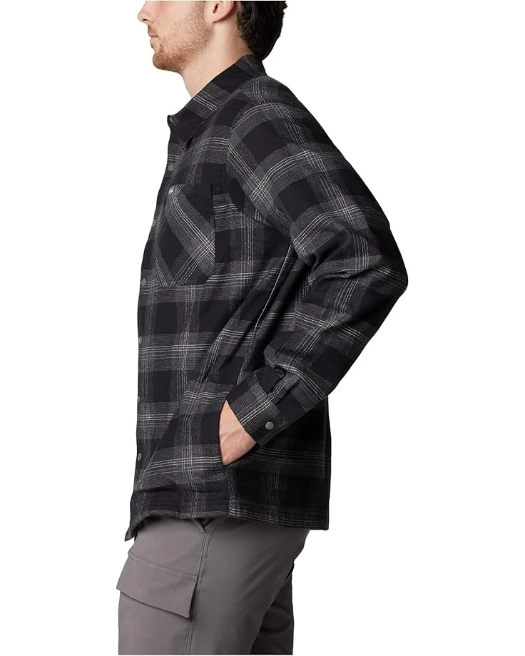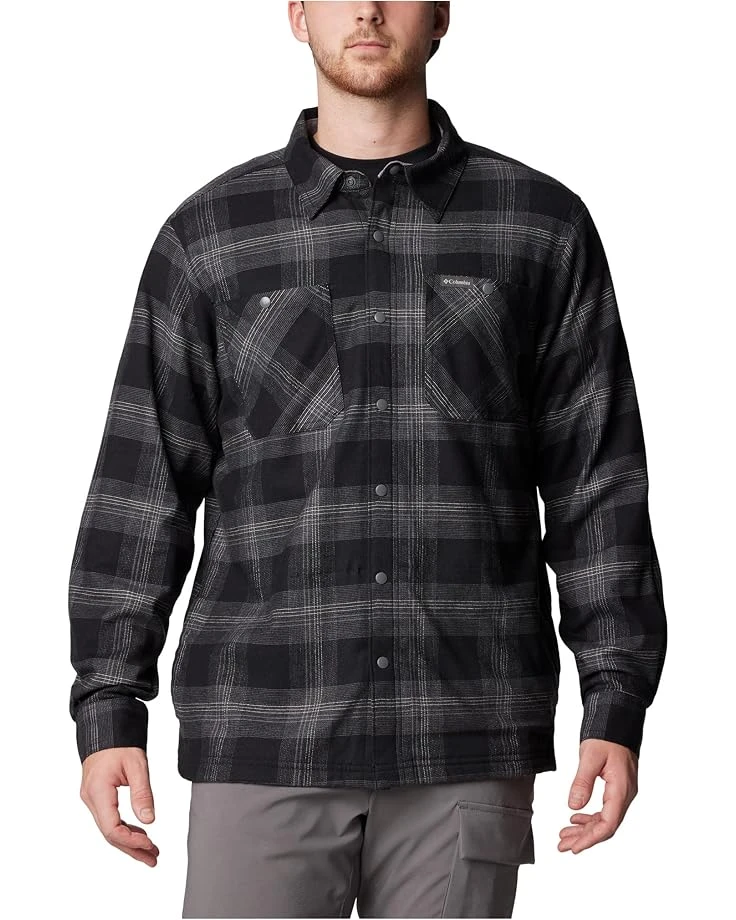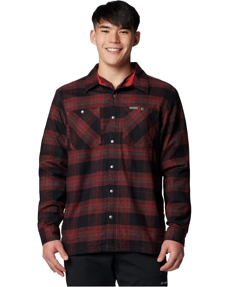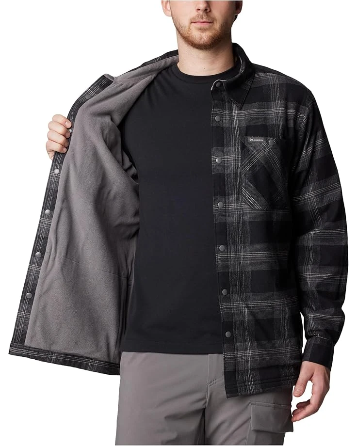 - Celebrate that cozy comfort throughout the day while flaunting a timeless and elegant look donning the Columbia® Cornell Woods™ Fleece Lined Shirt Jacket. Constructed in a classic flannel fabric, this layering piece is structured with a spread collar, long sleeves with adjustable cuffs, buttoned front closure, and dual chest pockets.