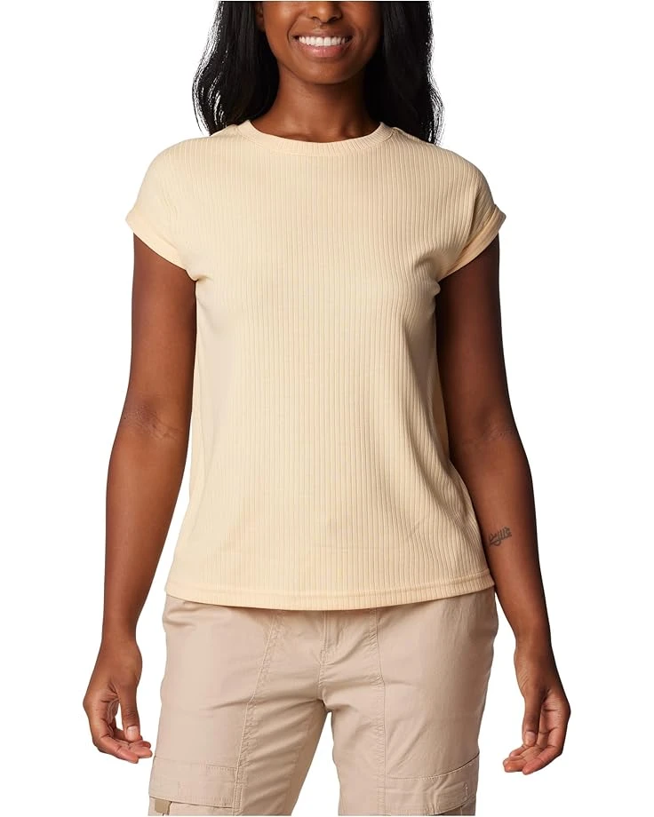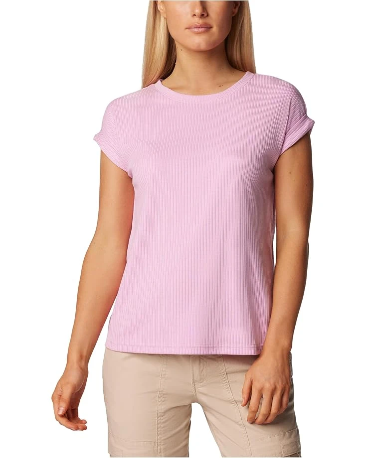 - Embrace the effortless style of the Columbia® Crystal Pine™ Tee. Crafted with comfortable stretch fabric, this tee offers a flattering fit and ultimate comfort. The crew neckline with binding on the collar, and short sleeves with rolled cuffs create a polished look that transitions seamlessly from day to night.