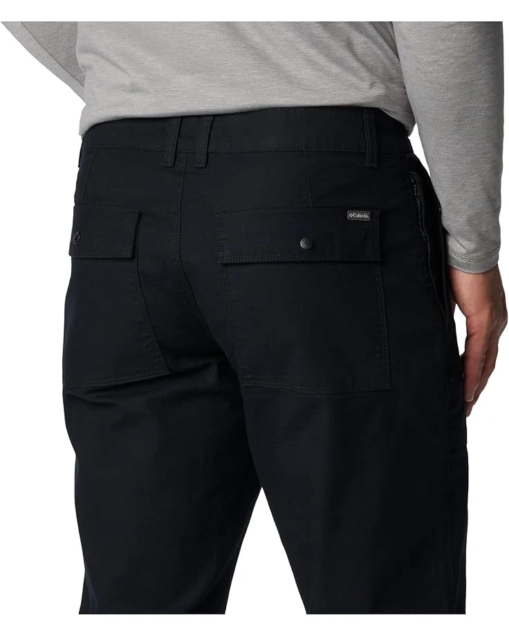 - Featuring a zippered closed security pocket and snap-closed back pockets for utility, the Columbia® Flex ROC™ Utility Pants offer convenient storage of essentials while you are on the go! These pants come with gusset detailing and a straight-leg fit. With just the right amount of stretch, these pants offer comfort like no other!