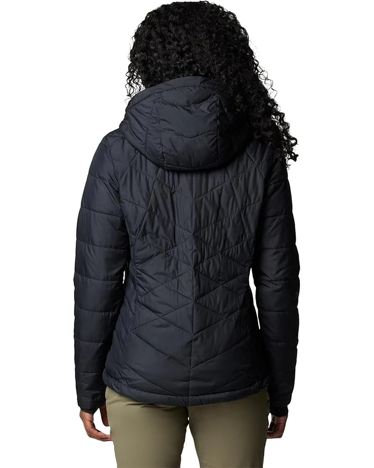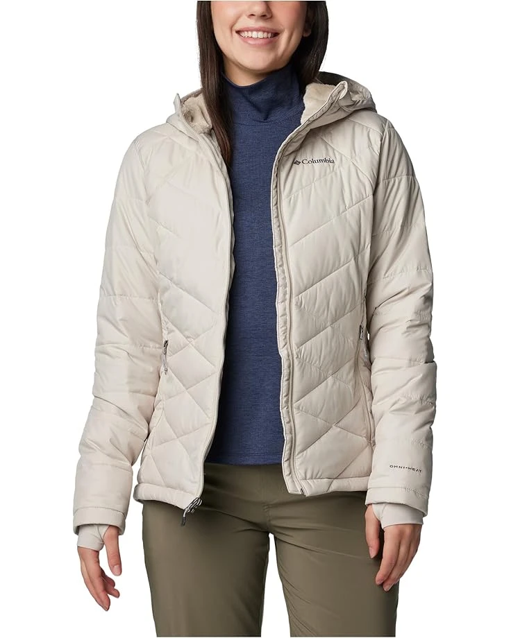 - The Columbia® Heavenly™ Hooded Jacket cuts a sleek profile, but it also packs the perfect amount of insulated warmth. It has a water-resistant exterior with Omni-Shield advanced repellency, an Omni-Heat thermal-reflective interior, and a fleece-lined hood and collar, which are essential as soon as temperatures drop. The classic-fit jacket features long sleeves with thumbholes, center-front zipper closure, an interior security pocket, zippered hand pockets, and an embroidered brand logo detail at the left chest.