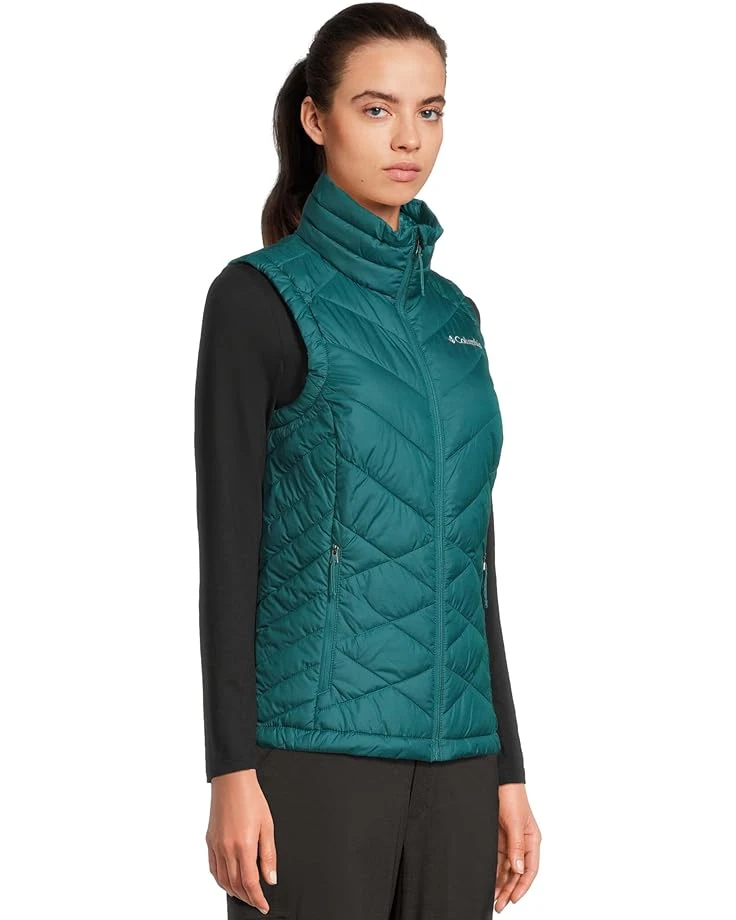 - Brave the chill without the bulk in the Columbia® Heavenly™ II Vest, your go-to layer for effortless warmth and comfort. Designed with Omni-Heat™ thermal reflective technology, it traps body heat while staying lightweight, so you stay cozy without overheating. The Omni-Shield™ advanced repellency keeps unexpected drizzles and light snow at bay, making it the perfect companion for city strolls or mountain escapes. A plush-lined collar adds a touch of luxury, while the zippered hand pockets and interior security pocket keep your essentials safe. Whether layering over a sweater or under a jacket, this sleeveless essential blends functionality with a sleek, flattering fit.