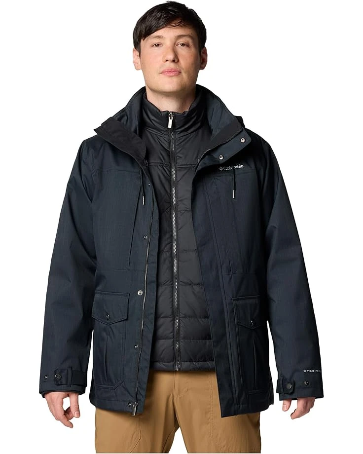 - The Columbia® Horizons Pine II Interchange Jacket is a 3-in-1 jacket that is designed with an Omni-Tech™ waterproof/breathable fully seam-sealed outer shell and an inner fleece shell, zip them together for the chilly weather. This convertible jacket comes with an Omni-Heat™ thermal reflective and insulated liner that keeps you warm and toasty. The drawcord adjustable hood, long sleeves with adjustable cuffs, and drawcord adjustable hem offer added comfort and protection. This zip-up jacket is designed with a 5-point interchange system and DWR finish, making it a must-have for the cold weather.