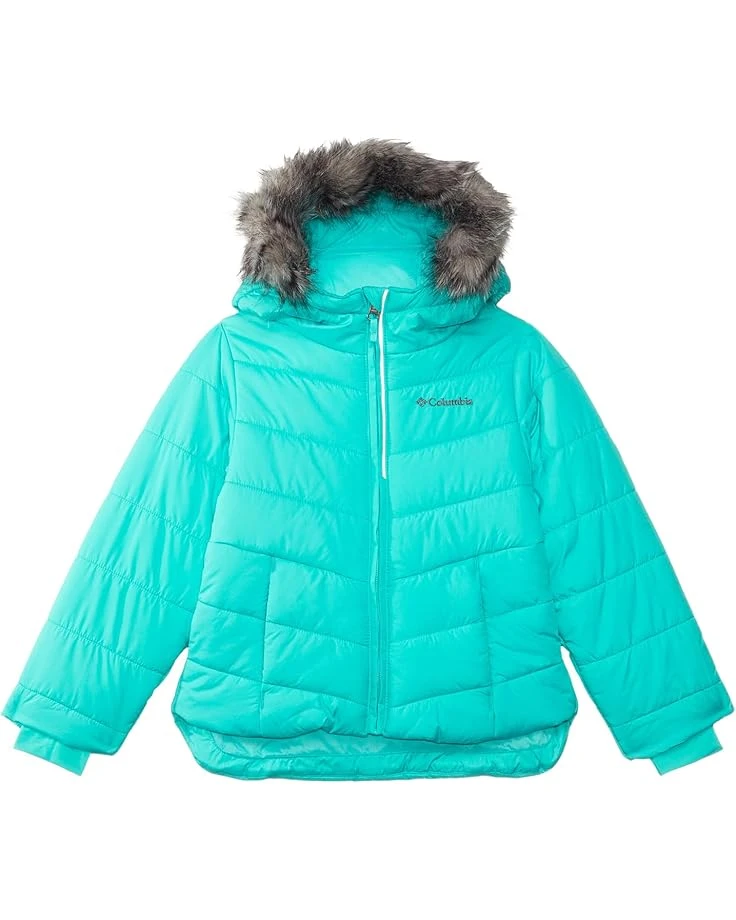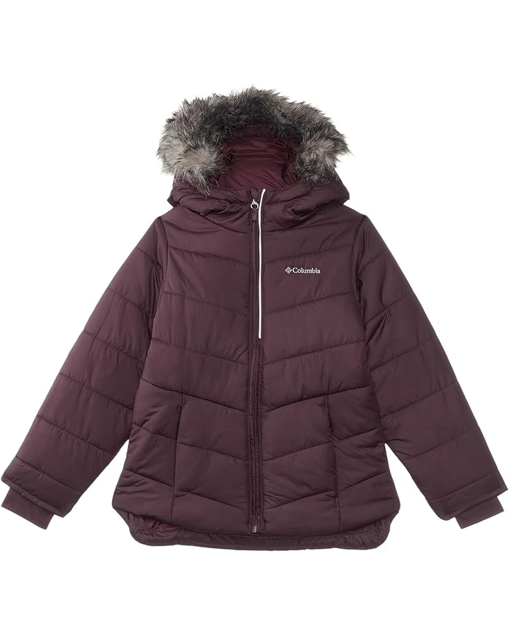 - Featuring lightweight 240gsm insulation for all-day warmth, the Columbia® Kids Katelyn Crest™ III Hooded Jacket is a comfortable cozy jacket that keeps your kid warm in the cold weather. The Outgrown™ grow system of the jacket lets you extend the cuffs by 1.5″ while the zippered front closure locks out the weather. This insulated jacket comes with long sleeves, an attached adjustable hood with removable faux fur, a chin guard, and a droptail hem.