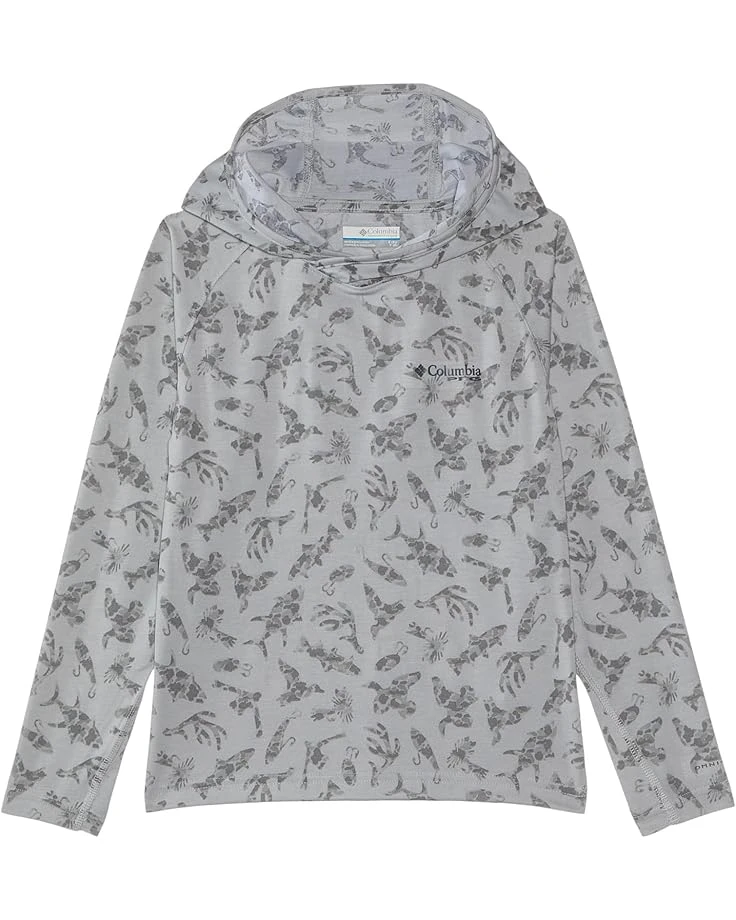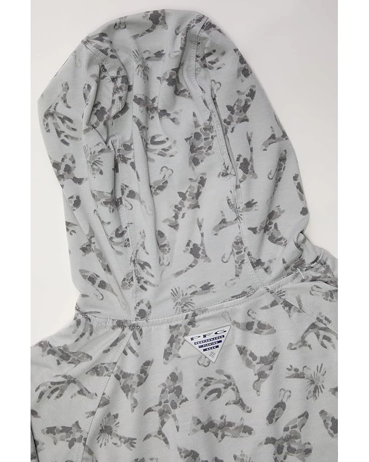 - Let your little one feel the warmth wearing the Columbia® Kids PFG Uncharted Hoodie. Featuring long sleeves, hooded neckline, straight hemline, and brand logo on the left chest.