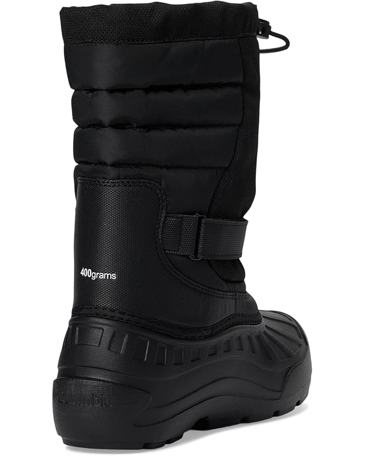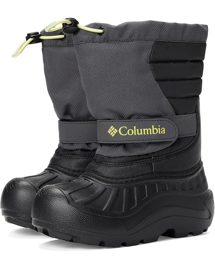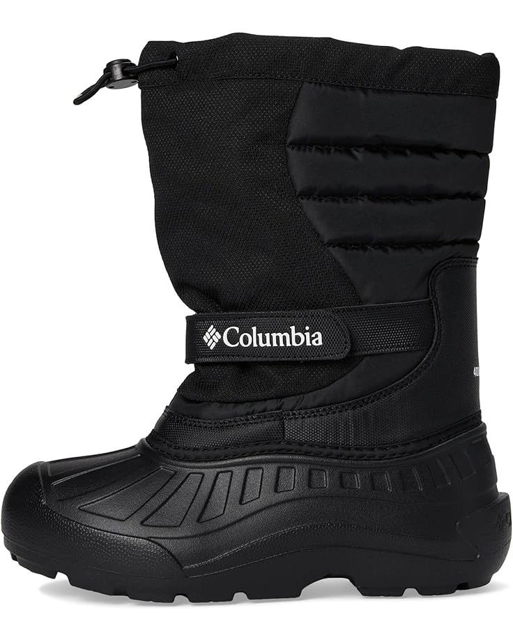 - Featuring a cinch drawcord at the top to keep snow and water out, the Columbia® Kids Powderbug™ Snowlite™ boots are the perfect footwear for your kid’s cold-weather adventures. These mid-calf boots are made of a removable and washable felt liner and EVA insole. The water-and-wind-resistant textile upper is styled with an elasticized strap and a hook-and-loop closure. Built with 400g insulation and a Techlite waterproof EVA shell, these snow boots offer long-lasting warmth and superior protection.