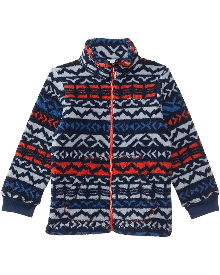 - Cozy up in adventure-ready style donning the Columbia® Kids Rugged Ridge™ II Printed Sherpa Full Zip! This trendy layer wraps your little one in ultra-soft warmth, thanks to its plush Sherpa fleece. With a regular fit and long sleeves, it’s perfect for cool days or outdoor fun. The zippered front closure with a protective chin guard ensures comfort, while the hand pockets offer space to stash small essentials or keep hands warm.