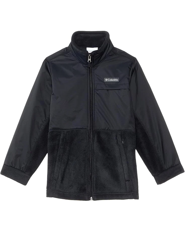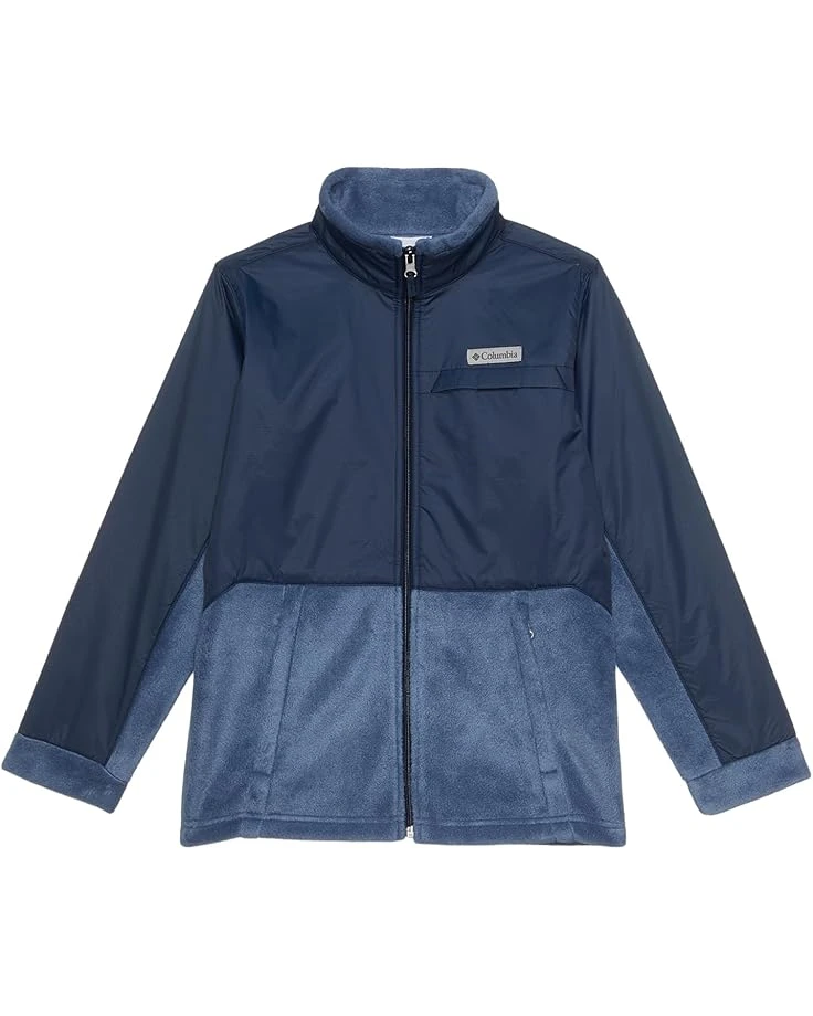 - Featuring Omni-Shield advanced repellency overlay for added comfort and protection, the Columbia® Kids Steens Mountain™ II Overlay jacket keeps your kid comfortable and dry all day. The polyester MTR filament fleece fabric of the jacket offers long-lasting warmth while the zippered front closure locks out the elements. This zip-up jacket is designed with long sleeves, a collared neckline, and a straight hem.