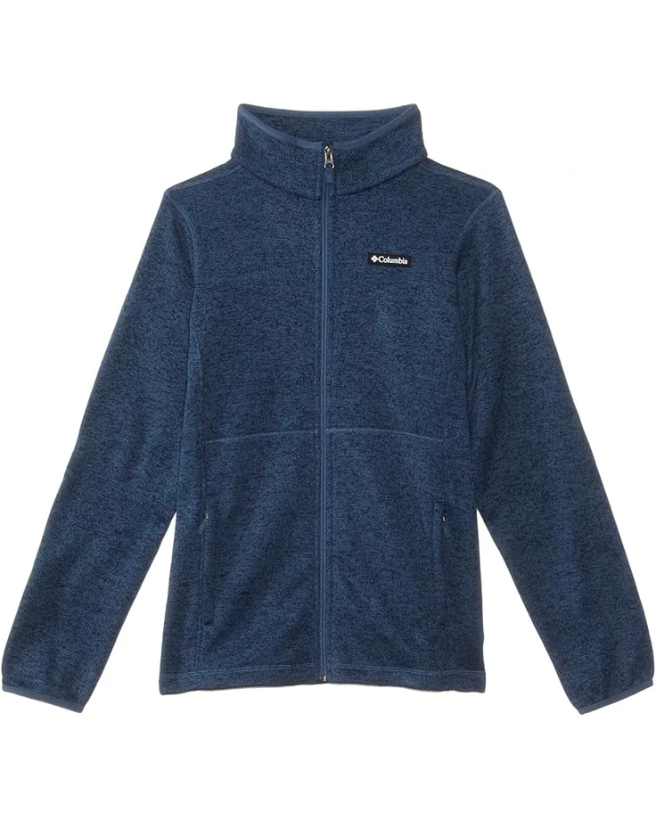 - This winter, keep your kid warm and cozy with the Columbia® Kids Sweater Weather™ Full Zip jacket. The zippered front closure of this winter jacket for boys and girls offer easy on and off. Crafted with fleece fabric that is soft on your kid’s skin, this zip-up jacket will match your kid’s comfort and style. Ideal for layering and styling, this fleece jacket can be paired with different styles and looks.