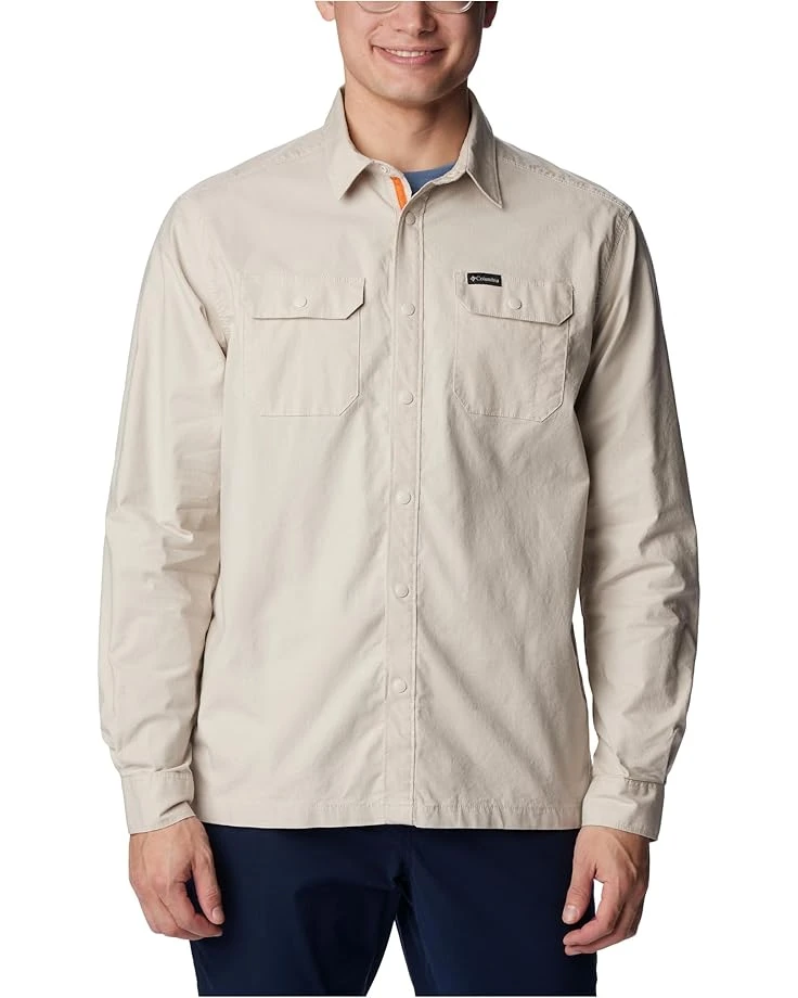 - The Columbia® Landroamer™ Lined Shirt can be worn for work or on casual occasions. Crafted with a durable and versatile cotton-blend with slight stretch, the shirt features a collared neck, long sleeves, button-up snap closure, and snap closure chest pockets on the chest for added functionality.
