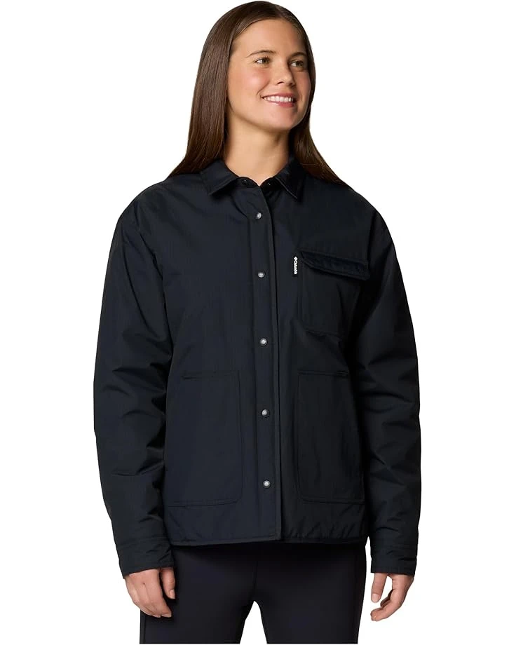 - Maintain chicness and stay protected – Columbia® Longhorn Ridge™ Reversible Shirt Jacket is your go-to for unpredictable days. Featuring advanced Omni-Shield™ repellency, this jacket keeps you dry and stain-free, whether you’re in the city or out in the wild. The reversible design offers two looks in one, with a snap button and zippered closure for convenience. Long sleeves, hand pockets, and a chest pocket add functional flair, while the shirt tail hem provides extra coverage. Perfect for layering, this jacket brings rugged style and dependable protection wherever your adventures take you.