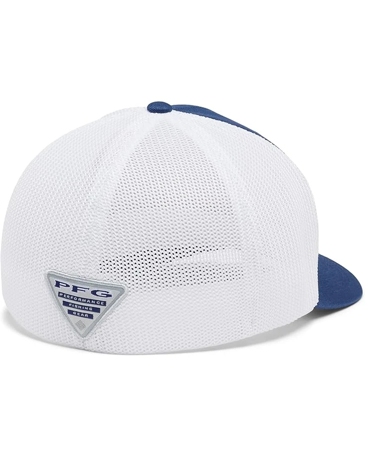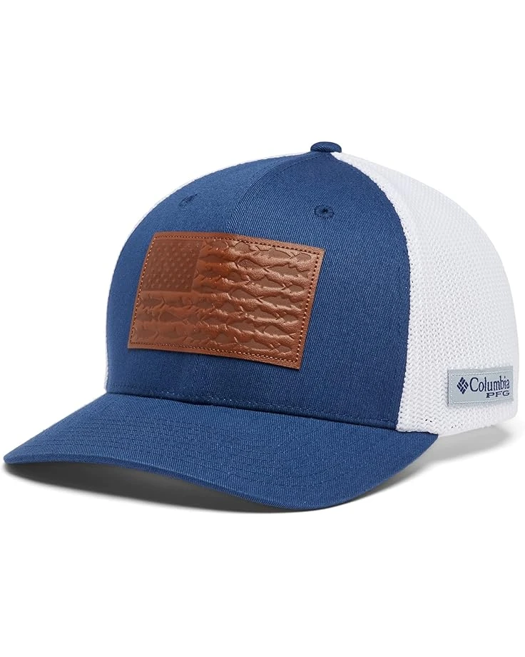 - Shade your head with the classy and fun design of the Columbia® PFG Leather Fish Flag™ Mesh Ball Cap.