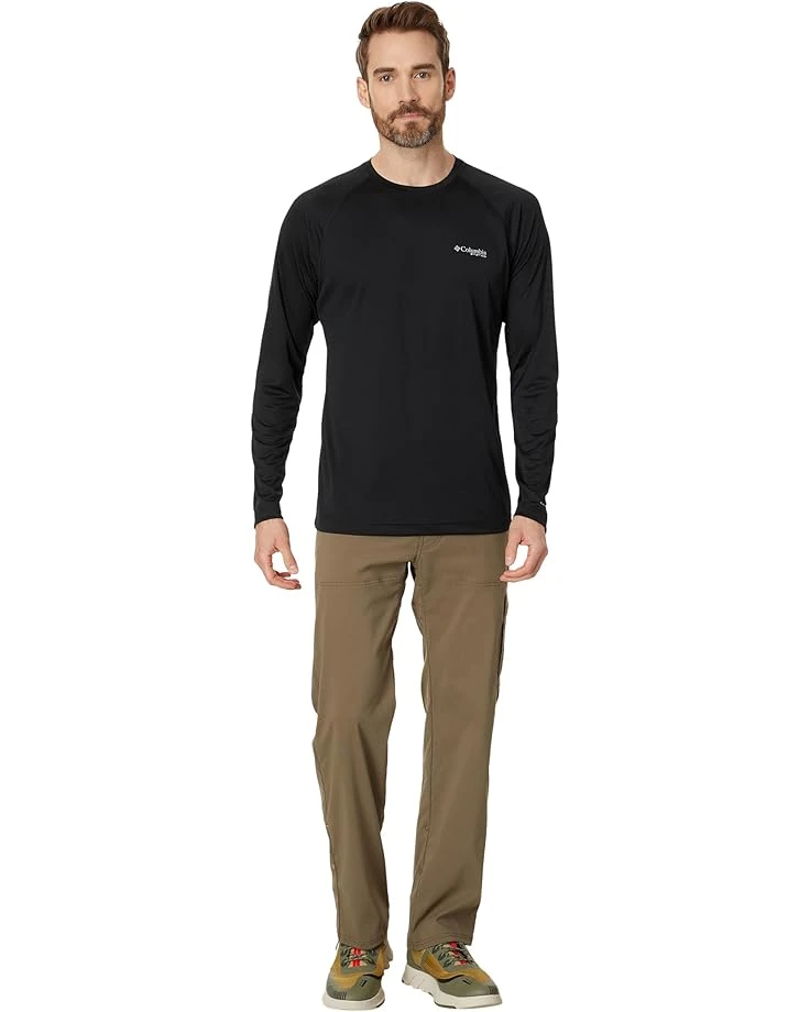 - Spun from Omni-Shade™ Broad Spectrum Air Flow UPF 50 and Omni-Wick™ keeps you dry and cool technology, the Columbia® PFG Solar Stream™ Long Sleeve will upgrade your sporty look. It features brand detailing on the left chest, crew neckline, and straight hemline.
