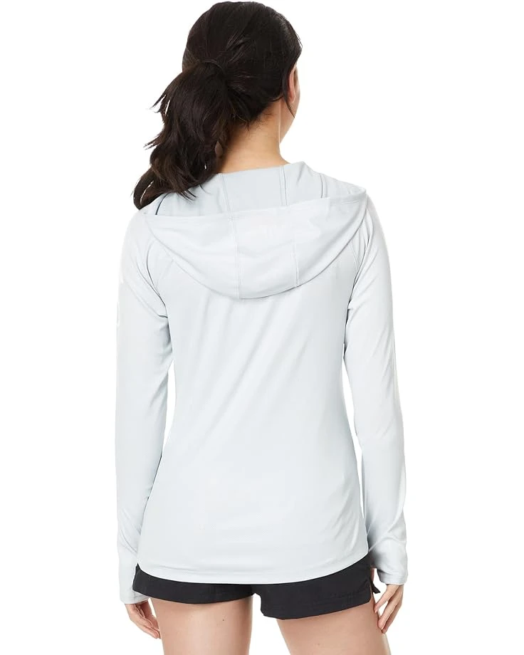 I own several of these hoodies because they are perfect for all my outdoor adventures (backpacking, fishing, paddleboarding, etc.) They are lightweight and stay cool on hot days. I never have to worry about getting a sunburn because these do a great job at protecting my skin. They are easy to layer up, and I usually wear a shirt/tank underneath. Fit is perfect, I usually wear a medium/large and always buy a medium in this style. Definitely recommend this hoodie for all the adventurous ladies out there!