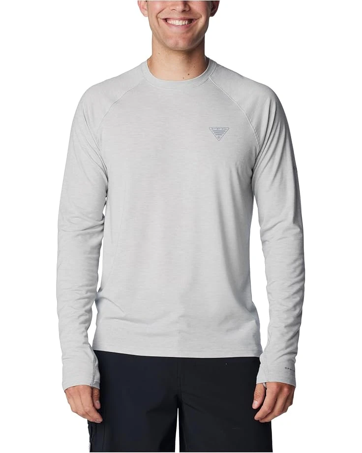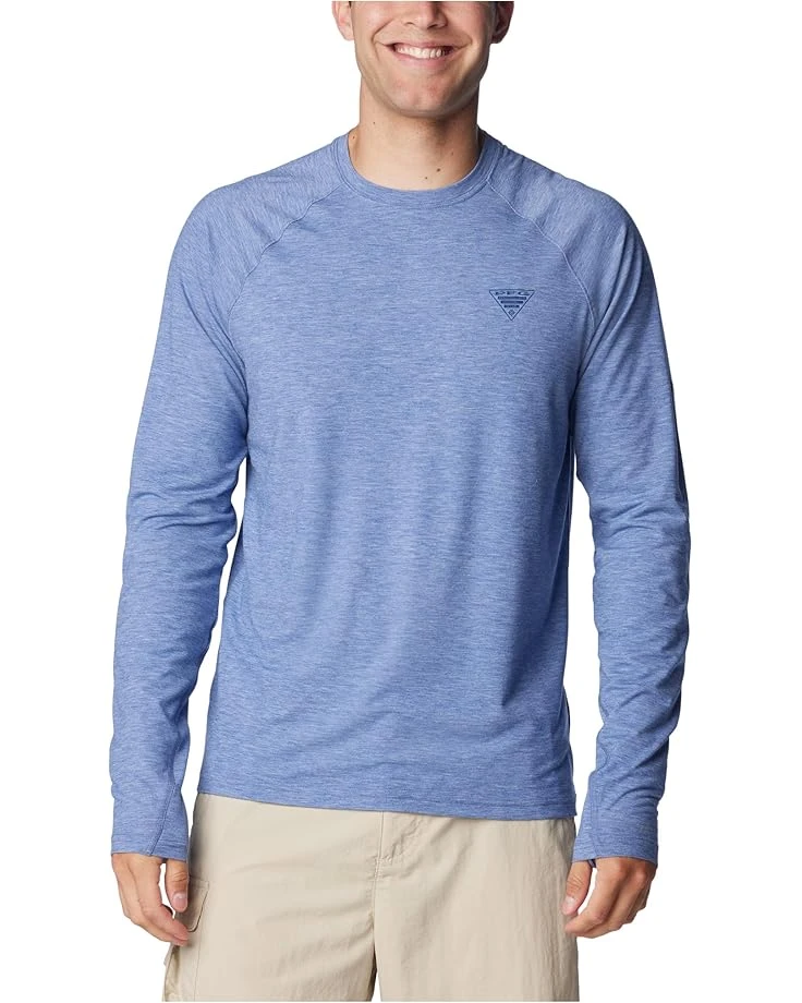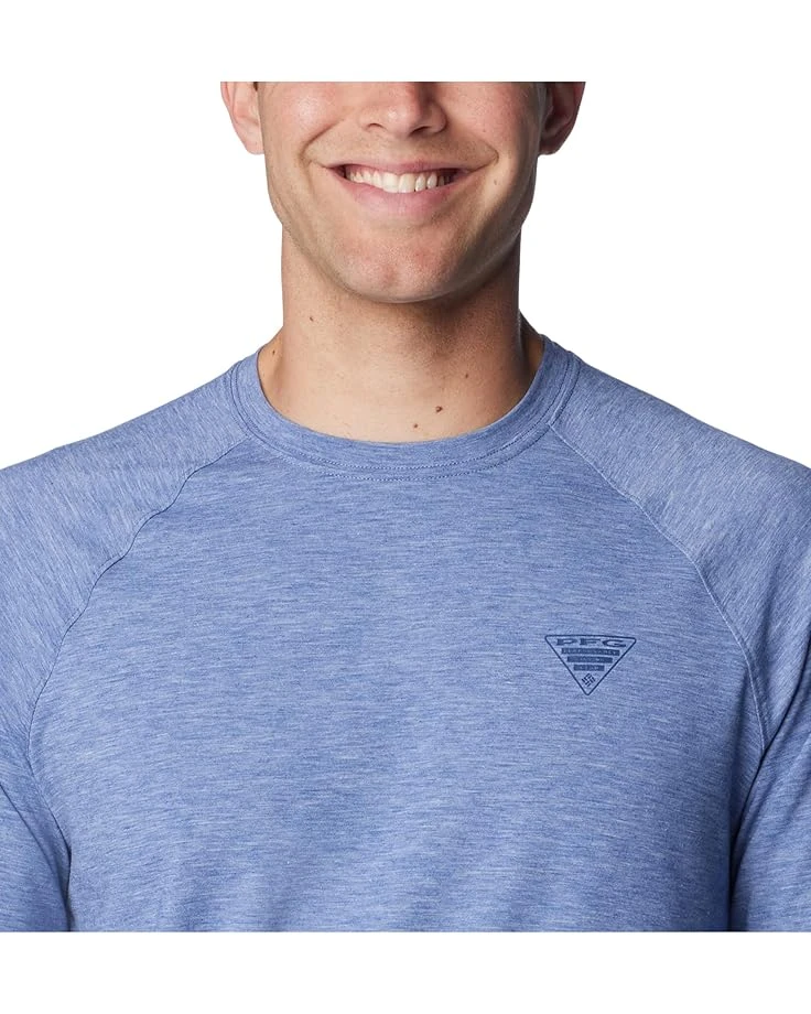 - Discover the ultimate comfort in this well-fitted crew neck Columbia® PFG Uncharted™ Long Sleeve shirt. This pullover activewear shirt features extra long raglan sleeves, straight hem, and brand logo detailing on the chest and sleeves.