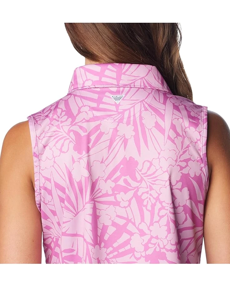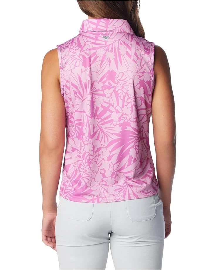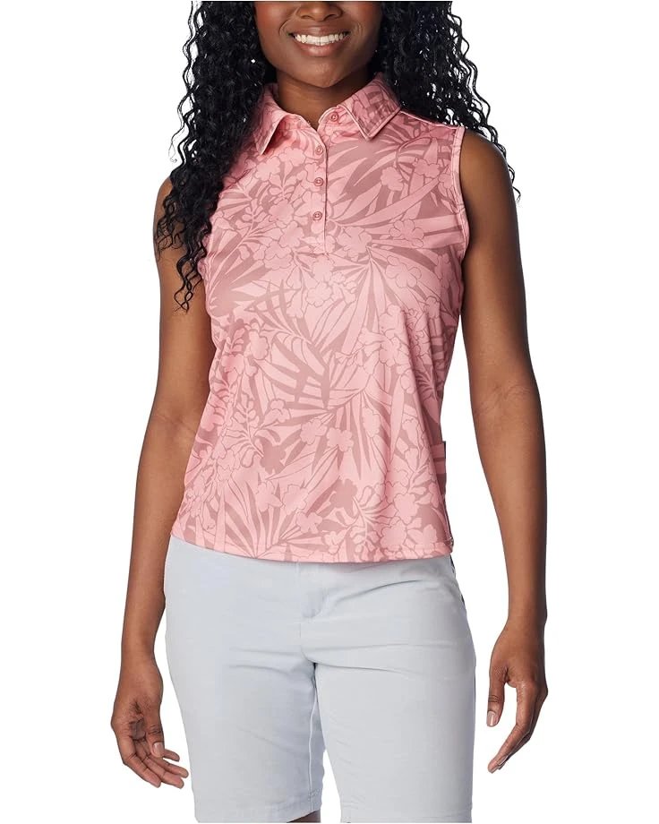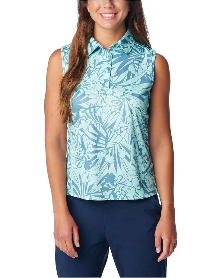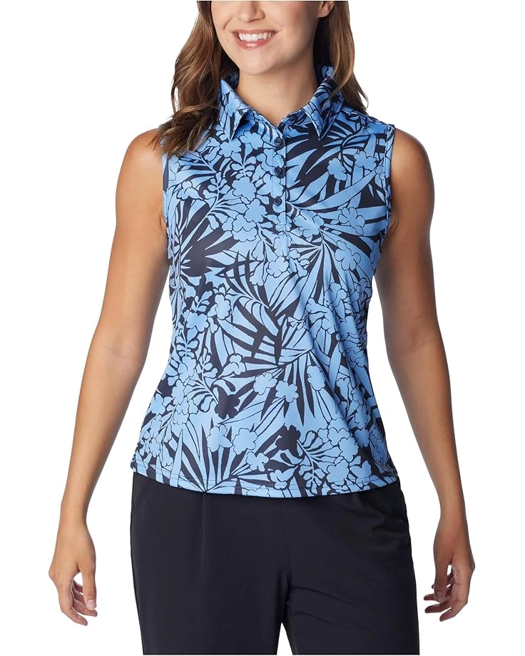 - Try this Columbia® Super Tidal Tee™ SL Polo to get a funky match with your black trousers and shoes. It has point collar with quarter front button closure placket. A slim fit, sleeveless design, and allover sketchy prints give it an elegant look for casual styling.