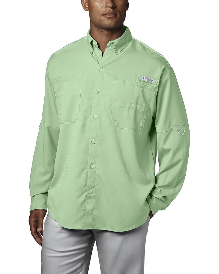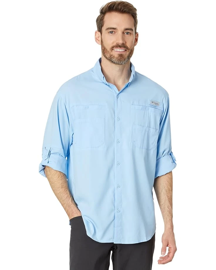 - Throw on the Columbia® Tamiami™ II, cast your line, and reel in a big one. Featuring vertical back vents with mesh lining that actively dumps excess heat and a button-down collar with a button-up placket.