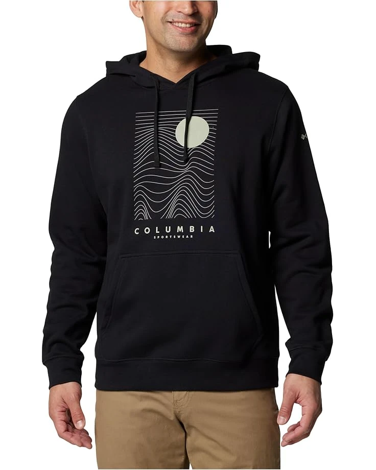 - Look stylish wearing the Columbia® Columbia Trek™ Graphic Hoodie, offering a relaxed fit. Featuring an attached hood and long sleeves, this hoodie has a drawstring closure on the front for a secure fit. The kangaroo pocket offers space fir utility and keeps your hands warm. Add this fashionable hoodie to your collection.