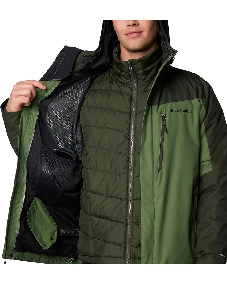 - The Columbia® Whirlibird V Interchange Jacket features Omni-Tech™ waterproof/breathable critically seam-sealed construction that offers durable weather protection. With its Thermarator™ insulation, this zip-up jacket provides enhanced warmth while the Omni-Heat™ thermal reflective fabric makes it a durable choice. The adjustable snap-back powder skirt, 3-point Interchange System, and underarm venting add to its functionality. Designed with long sleeves, a drawcord adjustable hood, adjustable sleeve cuffs, and a drawcord adjustable hem, this hooded jacket keeps you comfortable and warm in the chilly weather.